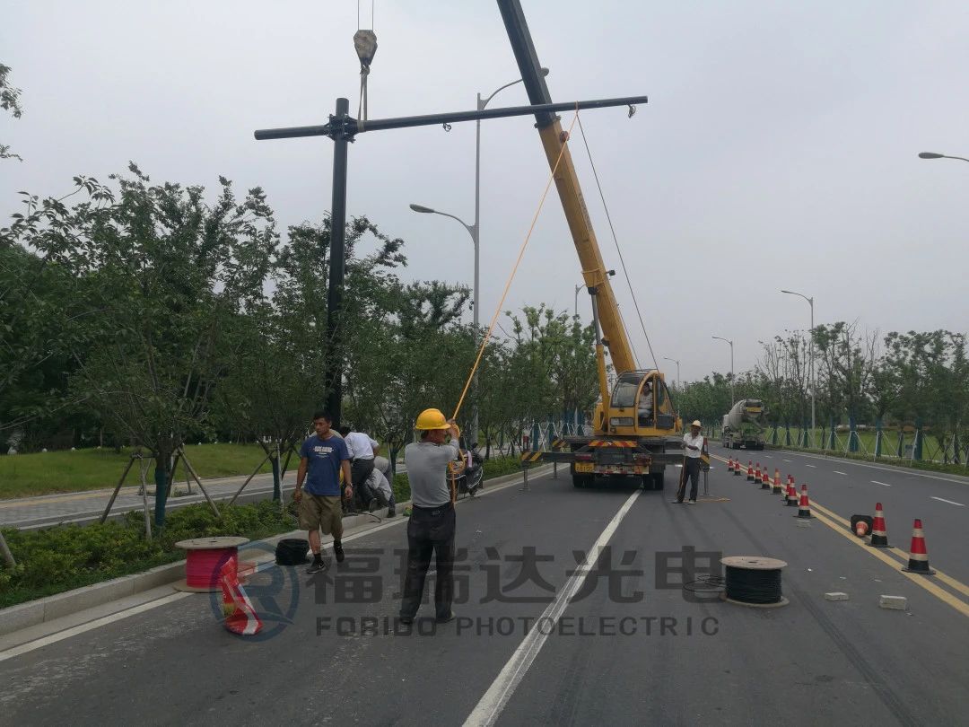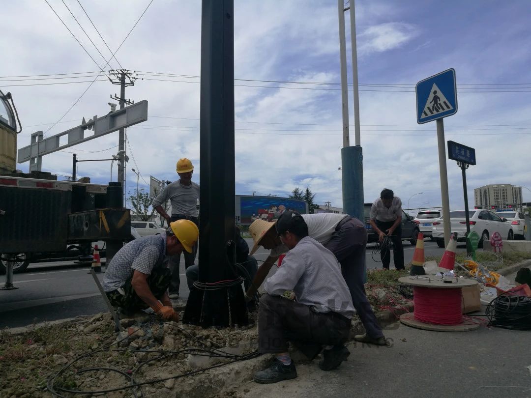 在整個(gè)安裝過(guò)程中,本公司也及時(shí)派出兩名技術(shù)人員進(jìn)行現(xiàn)場(chǎng)指導(dǎo)和技術(shù)協(xié)助,從桿件基礎(chǔ)的預(yù)埋件、電纜規(guī)格和穿線注意事項(xiàng)、立桿的拼裝、信號(hào)的安裝擺放再到電子警察桿的定位和走線結(jié)合圖紙進(jìn)行了仔細(xì)認(rèn)真對(duì)接和施工,確保了工程項(xiàng)目的如期順利完成。