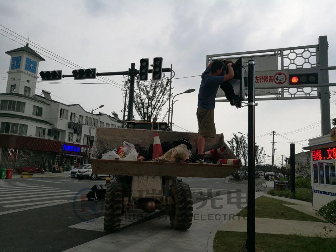 交通信號(hào)燈拼吊現(xiàn)場(chǎng),協(xié)作分工有序